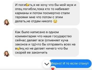«Как бы люди ко мне не относились я люблю свою страну. У нас очень красиво могут перекручивать. Я хочу чтобы в нашей стране наступил мир, потому что я устала терять близких и родных, я думаю что и вы устали. Потому я и выступила, потому что хочу, чтобы война закончилась, а страна была в мире и процветании. Я хочу чтобы меня услышали. Как некрасиво СМИ и телеграм-каналы перекрутили мои слова», - пояснила «Коря4ка».
