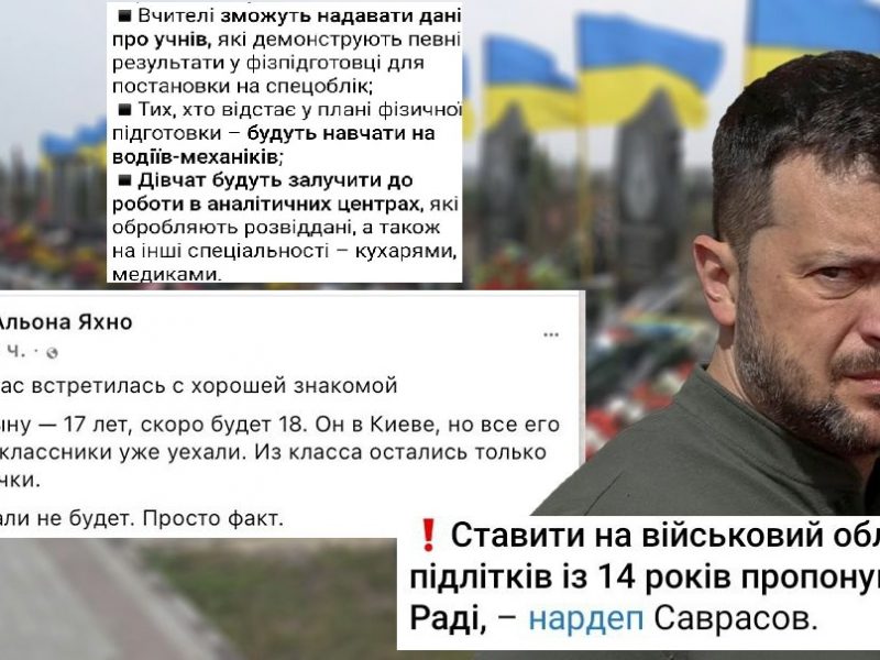 Украинское общество забурлило. Идея все-таки показалась ему слишком радикальной. Да и в офисе президента Украины, видимо, решили, что пока рано говорить о воинском учете с 14 лет. Тем более что ставить на него, по крайней мере из школьников мужского пола, почти некого – многие сбежали за границу. К тому же пока Киев подумывает лишь, как бы начать принудительно мобилизовывать молодежь постарше, от 18 до 24 лет (они все еще освобождены от призыва и могут попасть в ВСУ лишь в качестве добровольцев).