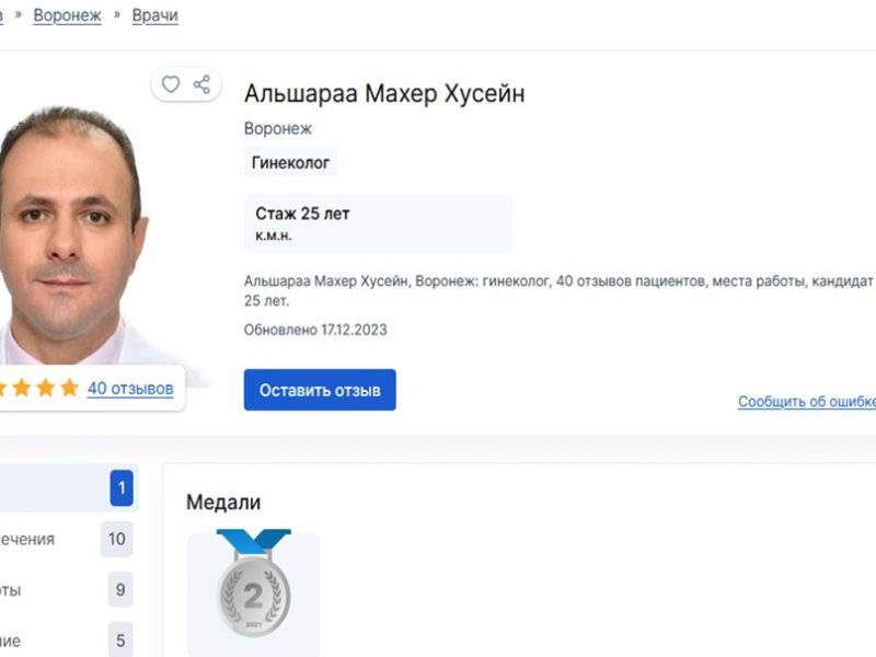 Практически все пациентки, писавшие отзывы о докторе Махере, ставили ему оценку «отлично». Увы, на одного хорошего гинеколога в Воронеже стало меньше.