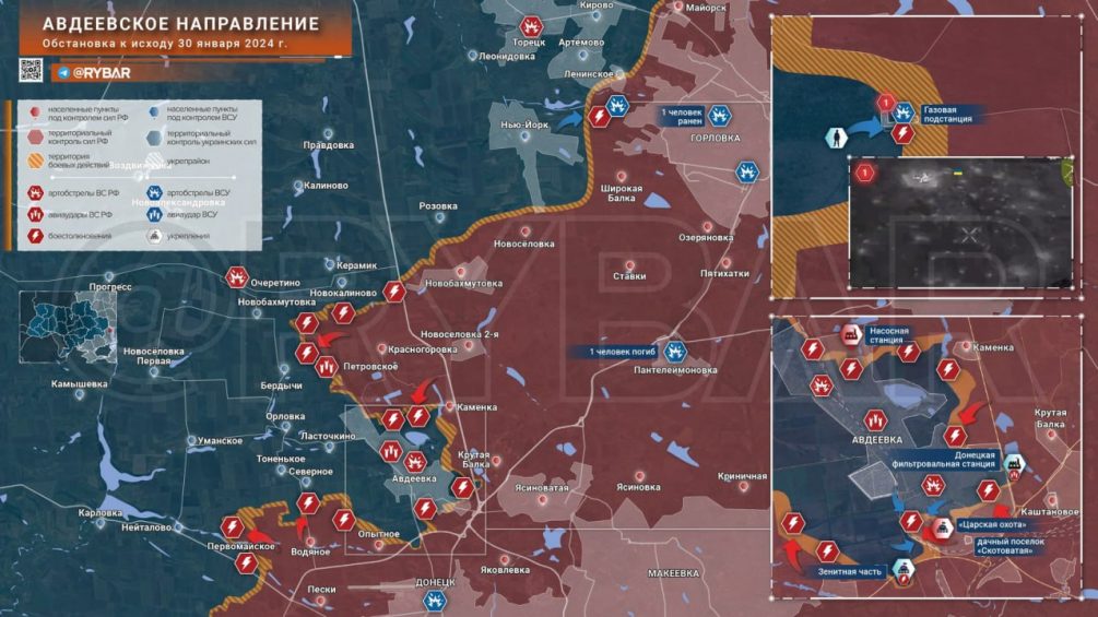 Как пишет Телеграм-канал «Рыбарь», на Авдеевском направлении продолжаются бои в районе Донецкой фильтровальной станции, подступы к которой являются мощным укрепрайоном ВСУ. На юге города наши бойцы отражают атаки украинских формирований в районе улиц Соборной и Спортивной.