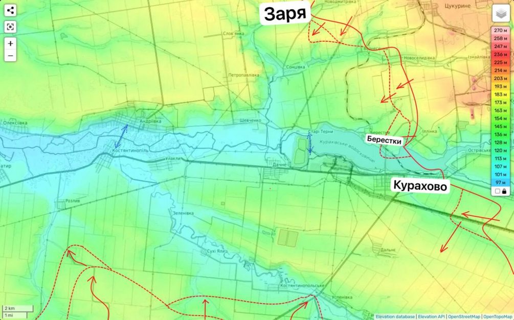 Аналитик отмечает, что после полного освобождения Берестков можно наносить удары по дамбе Кураховского водохранилища, сделав ее «дорогой смерти» для противника.