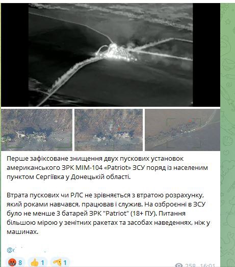 Украина пока официально не подтверждала результативность прилёта, но их военкоры согласились с потерей двух комплексов. Киевские СМИ жалуются, что число российских дронов-разведчиков в тылу ВСУ в последнее время резко выросло. Это позволяет сократить время принятия решения об ударе по постоянно передвигающимся целям.