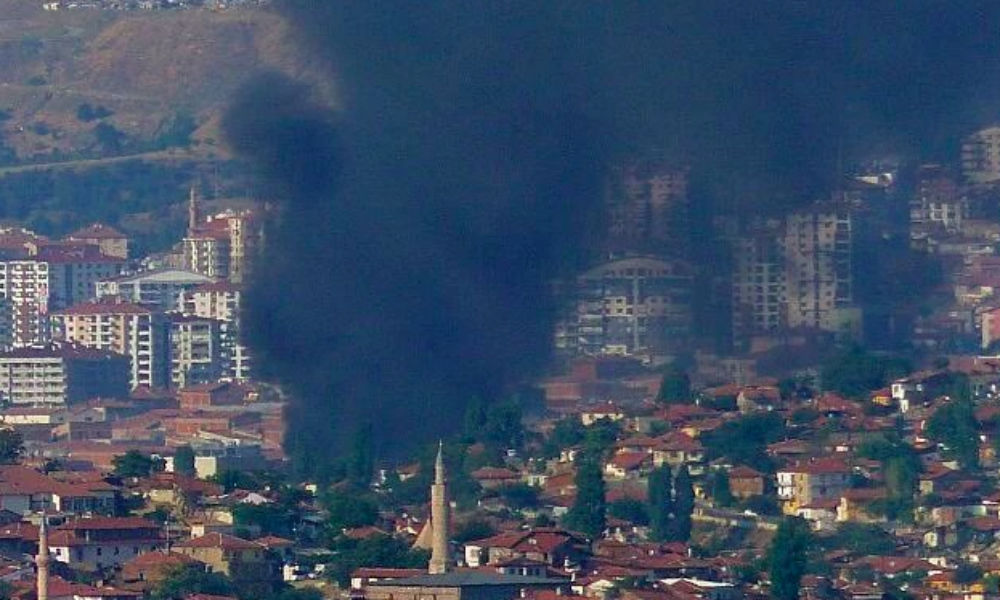 Турецкие полицейские рассказали, что дым образовался в результате пожара в жилом доме.