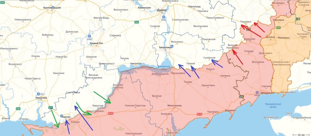 На правом фланге Покровска, к востоку от Мирнограда, наша армия прорвала оборону врага и зачищает район Барановки, заняв участок шириной более 3 км на глубину более 1.1 км. На левом фланге российские бойцы освободили Нововасильевку, продвинулись в южной части н.п. Новоандреевка на глубину более 600 м, южнее села Украинка ВС РФ заняли ряд лесополос на участке шириной до 3 км на глубину до 2 км, между Петропавловкой и Шевченко заняли «карман» шириной более 2.15 км, подробности - у «Блокнот Донецк».