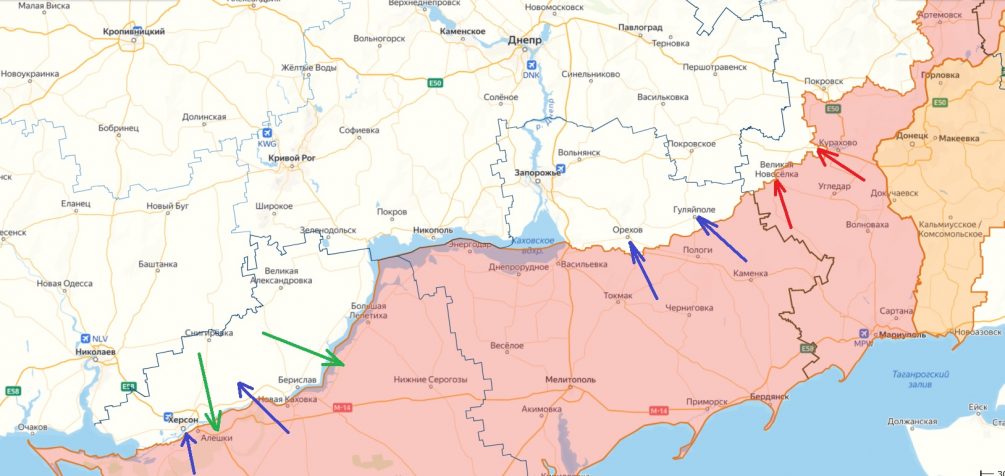 В зоне спецоперации армия России прорвалась на 3 км, вошла в Андреевку и штурмует Дачное на пути от Курахово к Днепропетровску. Также в районе села Константинополь российские войска продвинулись вдоль ряда лесополос севернее реки Сухие Ялы на участке шириной до 4.5 км на глубину до 600 метров и на северо-восточной окраине н.п. Дачное на глубину до 800 метров. Идут тяжёлые бои, подробности - у «Блокнот Донецк».