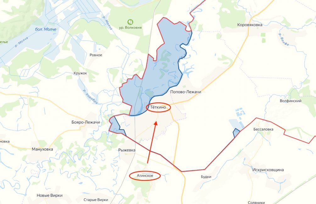 Наиболее ожесточенные бои развернулись на направлении Атинское - Тёткино. Боевики 24-ая бригада «Айдар» (запрещённая в РФ террористическая и экстремистская организация) при поддержке инженерной машины попытались прорваться на двух БМП и четырех квадроциклах. Российские операторы FPV-дронов уничтожили ИМР, квадроциклы и одну БМП. Вторая БМП была уничтожена барражирующим боеприпасом. Из 30 атакующих 28 ликвидированы.