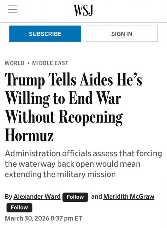 По данным издания, в последние дни в Белом доме пришли к выводу, что попытки полностью разблокировать пролив затянут конфликт дольше запланированных сроков — вместо четырёх–шести недель операция может значительно затянуться. В связи с этим Трамп, как утверждается, решил сосредоточиться на ключевых задачах — ослаблении иранского флота и сокращении ракетного потенциала.
