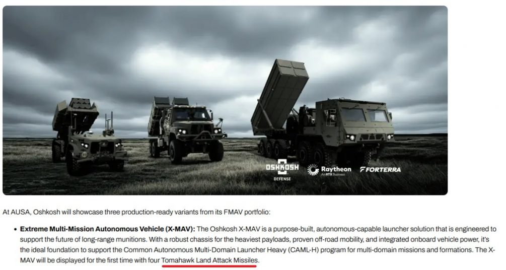 Смешного, на самом деле, мало. Пусковая на колесном шасси – это как Himars, попивший нам немало крови за несколько лет. Только версия для «Томагавков» называется X-MAV.