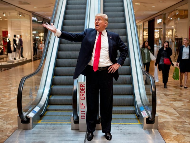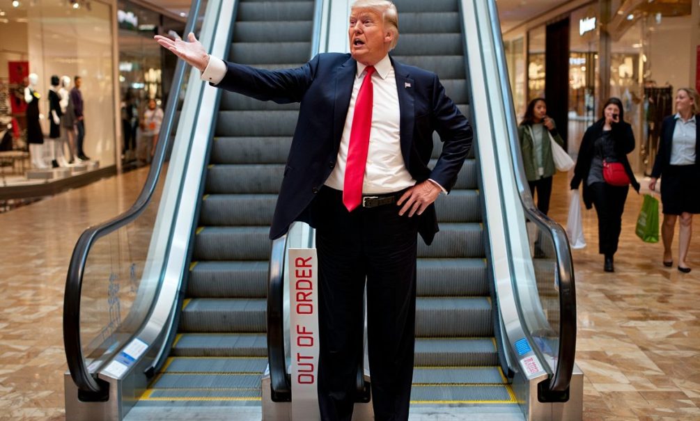 Подробно Трамп описывал, как ему удалось удержаться и не упасть «на острые края стальных прутьев» из-за внезапной остановки эскалатора. Заодно похвалил супругу Меланью, которая находится в хорошей форме и тоже устояла. Оба крепко держались за поручень, и это «спасло от катастрофы».