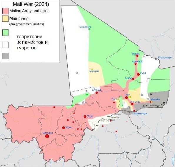 Здесь цели племени, Запада и Украины могли совпасть. Зная, что Белый собрал компромат, а группировка правительственных войск Мали вместе с вагнеровцами движется к границе с Алжиром, они вполне могли слить повстанцам всю информацию. Сепаратисты получают победу и трофеи. Запад - медийную огласку и сокрытие подготовки исламистов на Украине.