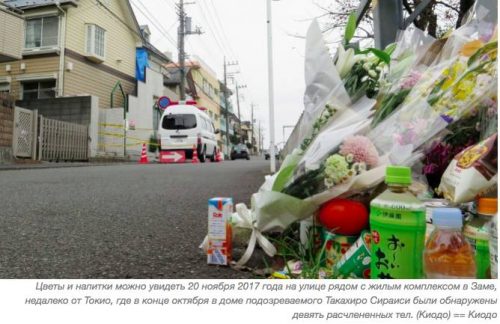 Убивал так много, что уже не помнит, кто есть кто – именно такое признание было сделано серийным убийцей, которому сегодня суд в Токио вынес приговор. 30-летнего Такахиро Сираиси приговорили к смертной казни за убийства девяти человек, восемь из которых молодые девушки в возрасте от 15 до 26 дет и один мужчина, сообщает японское агентство Киото.