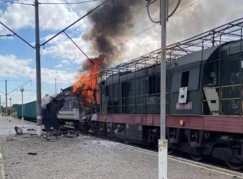 Киевские ресурсы пишут, что «удар был нанесен беспилотником» по поезду, который стоял на вокзале в Шостке (готовился к отправлению), а через несколько минут, когда проходила эвакуация пассажиров, БПЛА атаковал еще один поезд. Зеленский до того «распереживался», что поставил у себя в канале видео, на котором горит пусто й вагон, примыкающий к локомотиву.