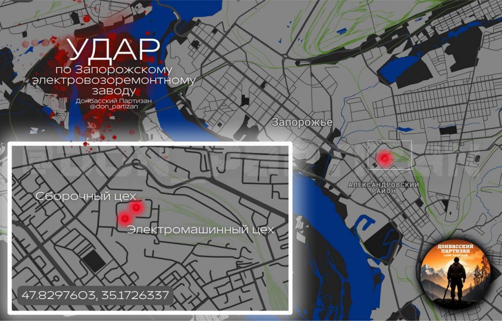 Председатель движения «Мы вместе с Россией» Владимир Рогов пишет, что воздушная тревога в городе не объявлялась. О работе сил ПВО в городе также не сообщалось. Фактически, Киев оставил свои предприятия без защиты. Целью ракет были объекты инфраструктуры в районе 8-го посёлка Соцгорода, используемые режимом Зеленского для ведения боевых действий в зоне СВО. Как отмечают наши военкоры, удар пришёлся по Запорожскому электровозоремонтному заводу.