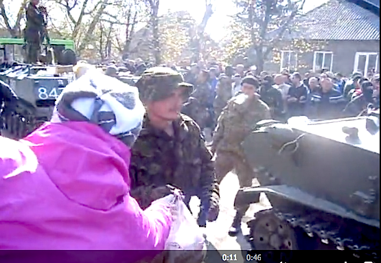 Они перешли на сторону ополчения в Краматорске сегодня утром. Приехав в город, солдаты (в основном молодые ребята - срочники) увидели не страшных сепаратистов, сеющих ужас и хаос, а обычных жителей - мужчин и женщин, стариков и детей, которые не хотят войны. БТР-овцы не захотели стрелять по своему народу.