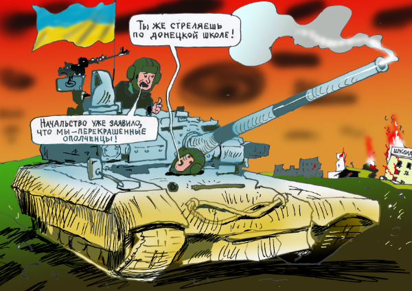 По его утверждению, ополченцы перекрасили свою тяжелую технику в цвета украинской армии и начали обстреливать свои же позиции, а также мирные кварталы Донецка.