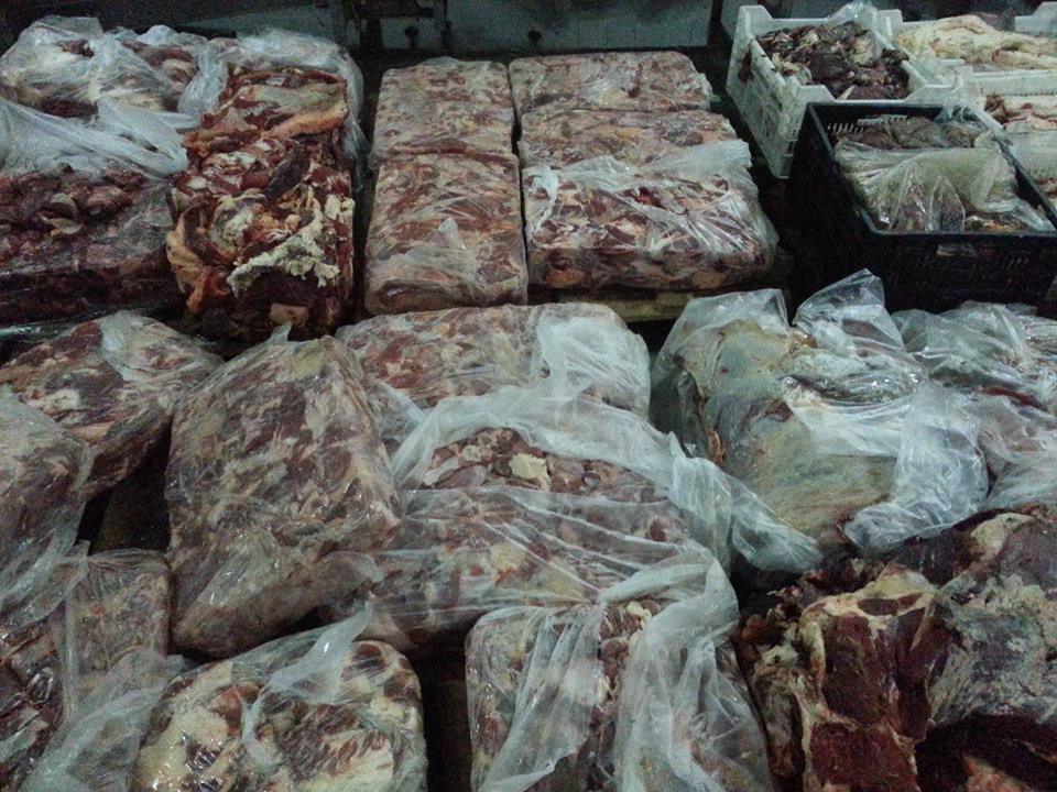 «При входе в забойный цех обнаружено большое количество полутуш крупного рогатого скота и конины, висящих вперемешку...»