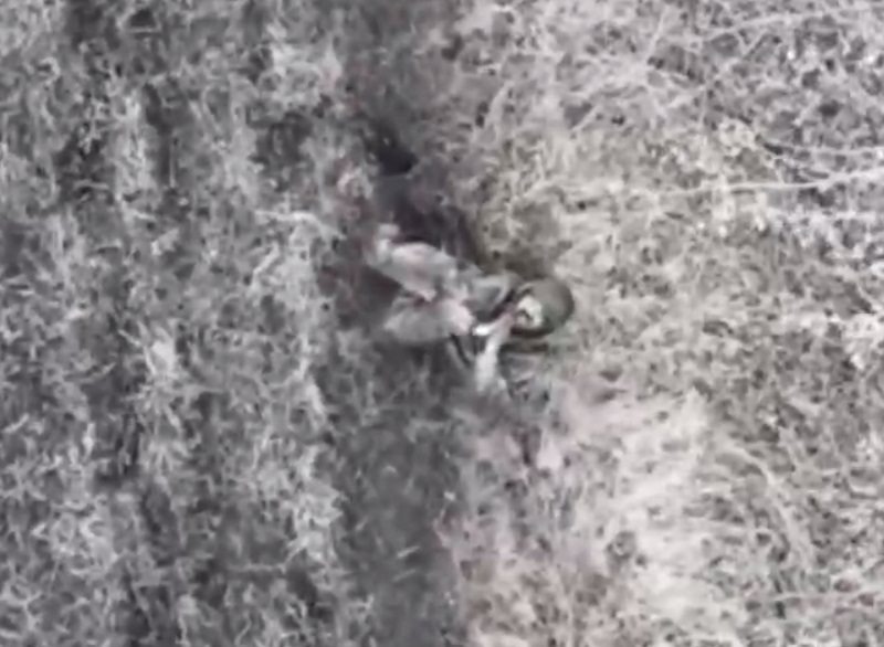 В прошлом году украинский беспилотник заснял попытку убийства российского военного. На кадрах российский военный хладнокровно отбрасывает от себя сброшенные на него с дрона гаранты. Это видео разошлось по соцсетям. Ролик привлек внимание британской газеты The Sun, которая назвала видео шокирующим.