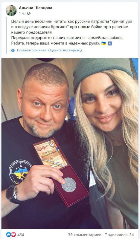 Свой вклад в это дело попыталась внести волонтёр Алёна Шевцова, которая запостила в соцсетях фото с Залужным, который якобы жив и здоров.
