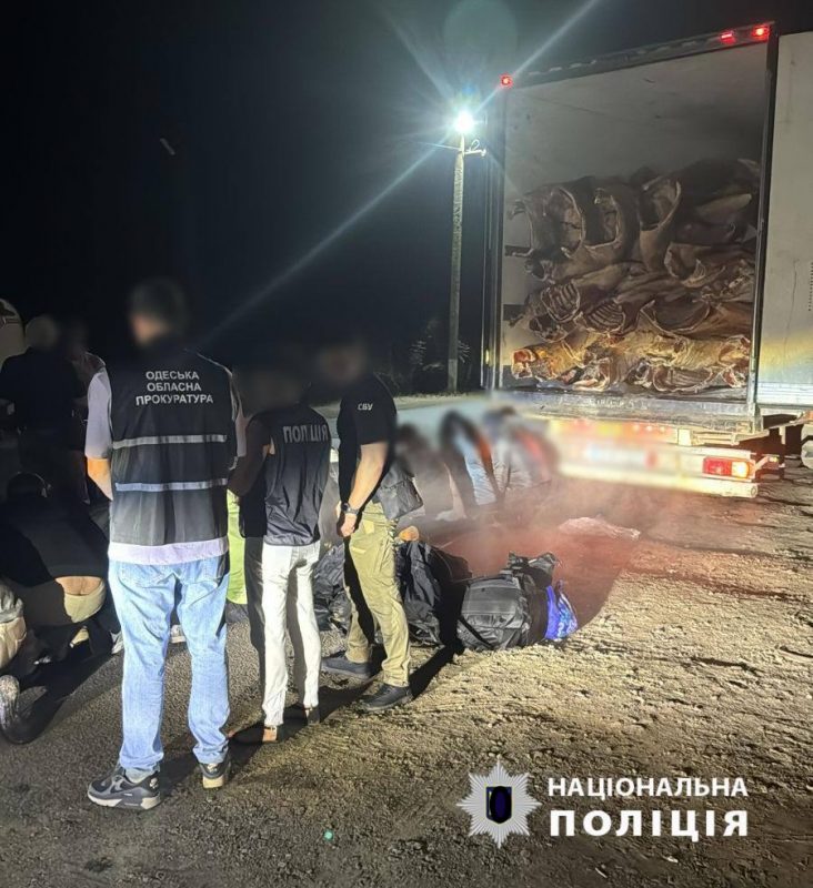 Сообщается, что транспортировку организовали два 39-летних выходца из Азии, их гражданство не уточняется. Эти люди привозили мясо на Украину в рефрижераторах и решили попутно заработать. Однако полиция задержала их в Одессе.