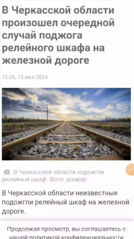 В частности, в Черкасской области неизвестные подожгли релейный шкаф на железной дороге. Диверсия имела место неподалёку от посёлка Лещиновка, рядом с железнодорожным перегоном. По данному факту Черкасским управлением СБУ открыто уголовное дело. Также известно об активизации одесских партизан. Так, 9 мая истинные патриоты своего города подожгли аккумуляторы для резервного питания железнодорожных светофоров – об этом пишет телеграм-канал «Думская». Для этого неизвестные отжали дверцу батарейного шкафа в районе улицы Жолио-Кюри и подожгли семь источников питания. О произошедшем полицию проинформировал дежурный станции «Одесса-Восточная».