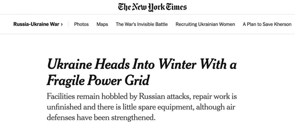 Потеря генерации настолько велика, что некоторые эксперты задаются вопросом, сможет ли Украина обойтись без отключений света зимой даже без обстрелов, пишет «Страна». В свою очередь, Минцифры советует украинцам готовиться к блэкаутам и даёт советы как не остаться без интернета во время отключений.