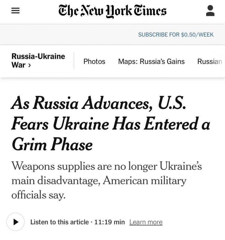 То, что война до последнего украинца, объявленная Зеленским, не может продолжаться вечно, было очевидно с самого начала, и тем кто до сих пор не прозрел сейчас мало вероятно что-то доказать. Тем не менее, американские обыватели, прочитав NYT, наверняка с удивлением осознают, что деньги налогоплательщиков были вложены в заведомо проигрышный проект.