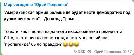 «То есть, как я понял из данного высказывания президента США, то, что писала советская, а потом и российская «пропаганда» было правдой?» - потроллил американские власти в своем телеграм-канале военный эксперт Юрий Подоляка.