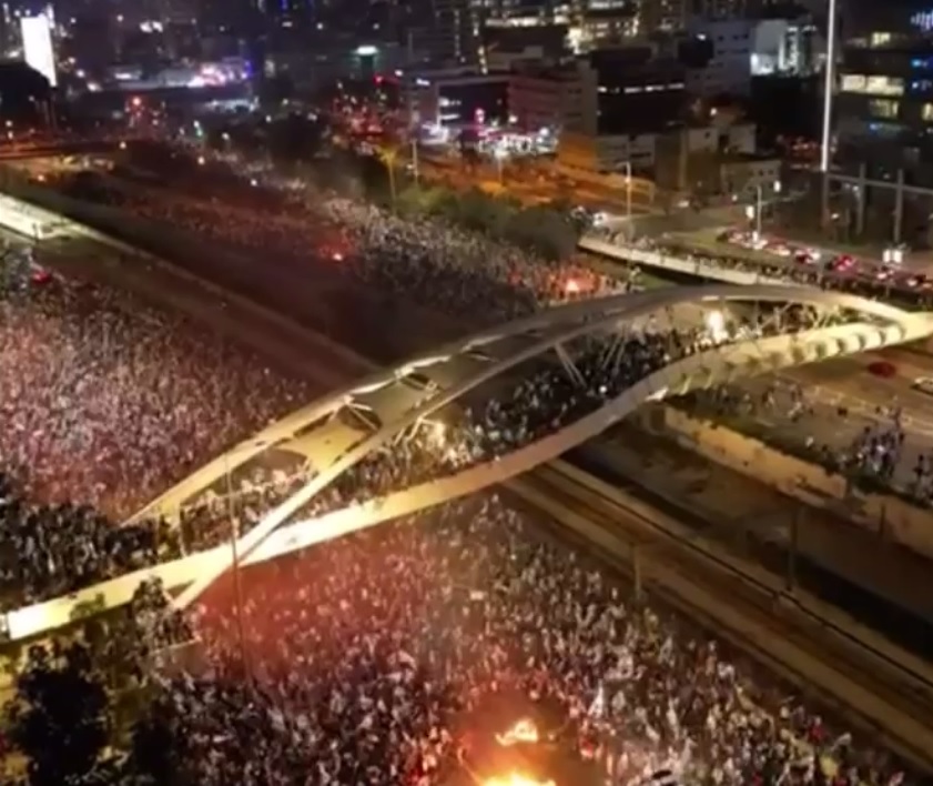В крупнейших городах Израиля накануне начались массовые протесты. Сотни тысяч людей вышли на улицы, чтобы выразить недовольство политикой правительства Нетаньяху и предлагаемой судебной реформой. Изначально в стране была объявлена всеобщая забастовка, но протесты переросли в столкновения с полицией и штурм здания израильского парламента.