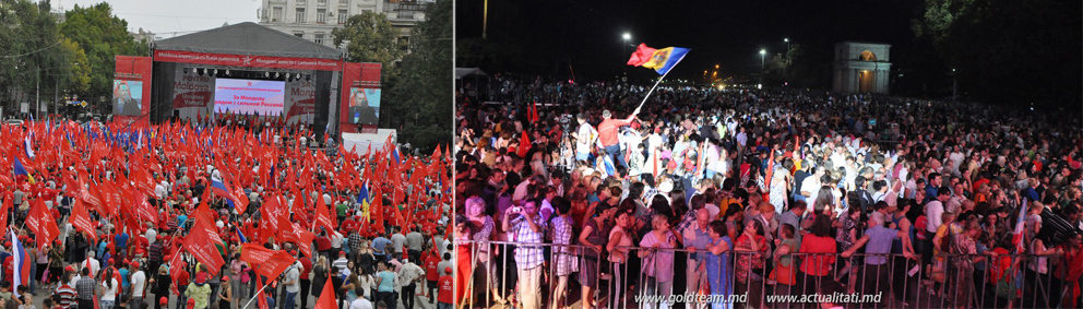 Перед митингом состоялся грандиозный марш «За Молдову в Таможенном Союзе»: три колонны, выступившие из разных районов города, сошлись на Площади. Главными лозунгами манифестации были лозунги: «За Молдову вместе с Россией!», «За Молдову без олигархов!», «Молдова и Россия – вместе победим!».