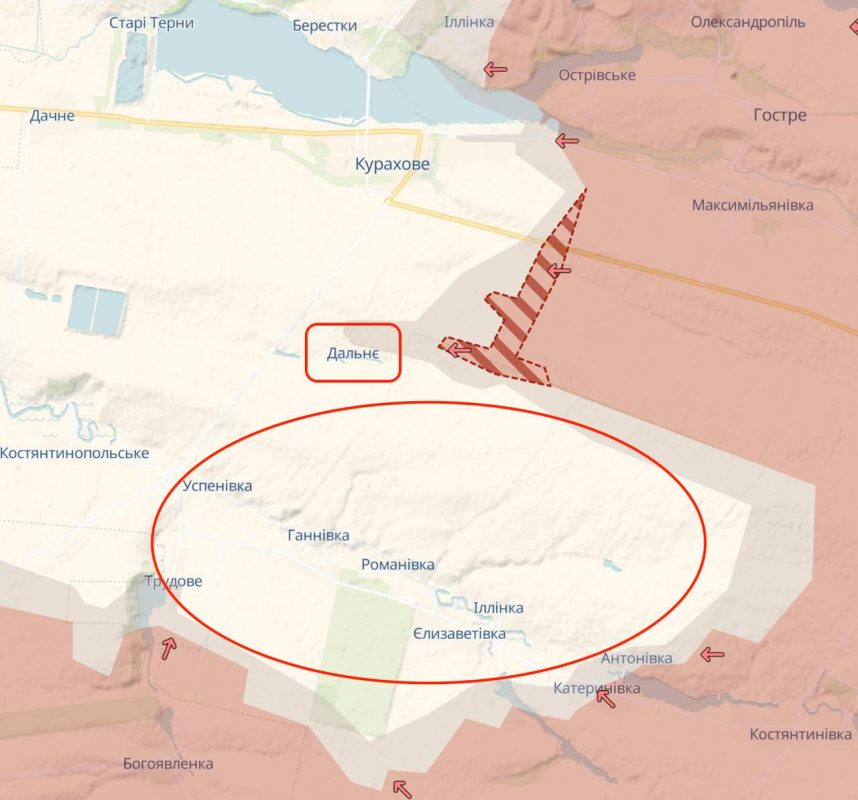 Согласно сообщениям из украинских медийных источников, вооруженные силы Украины (ВСУ) оказались в оперативном окружении в районе сел, расположенных южнее Курахово, в результате прорыва российских войск в село Дальнее. Это продвижение подтверждается картами военных аналитиков, таких как Deep State, которые показывают, что до трассы Курахово-Успеновка российским войскам остается всего около двух километров.