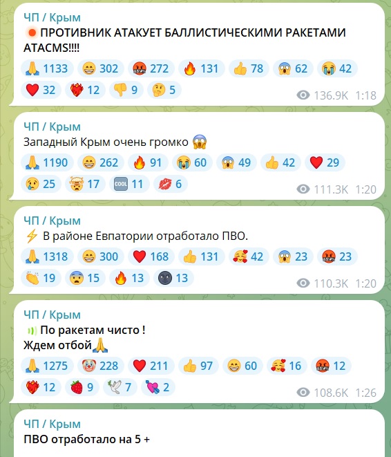 Добавим, что мониторинговые крымские паблики сообщили об атаках при помощи ATACMS. По их данным, «ПВО отработало на 5+». В Минобороны обстрел не комментировали.