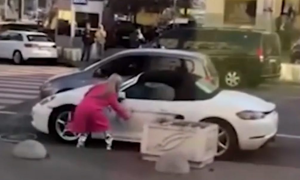 В центре Киева девушка напала на дорогой автомобиль Porsche.