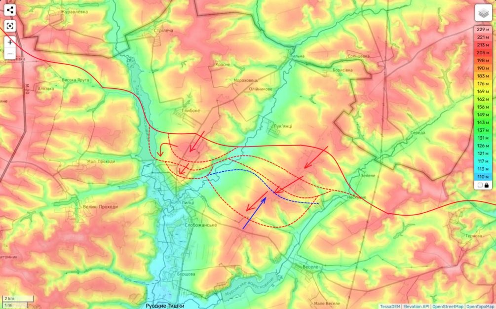 Сообщается, что ВС РФ отошли из ранее занятых позиций ВСУ восточнее села, а на севере наоборот чуть продвинулись. Бои на Липцовском направлении продолжаются.