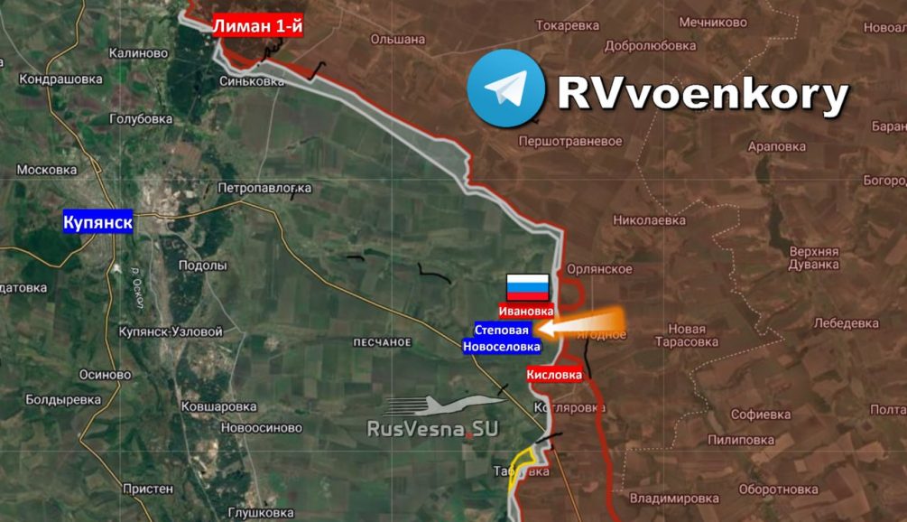 Стягивая резервы к Липцам, падение которых резко ухудшит ситуацию для ВСУ под Харьковом, украинцы не смогли удержать ВС РФ под Купянском. Несколько дней назад армия России закрепилась в Ивановке, которая расположена севернее освобождённой недавно Кисловки.