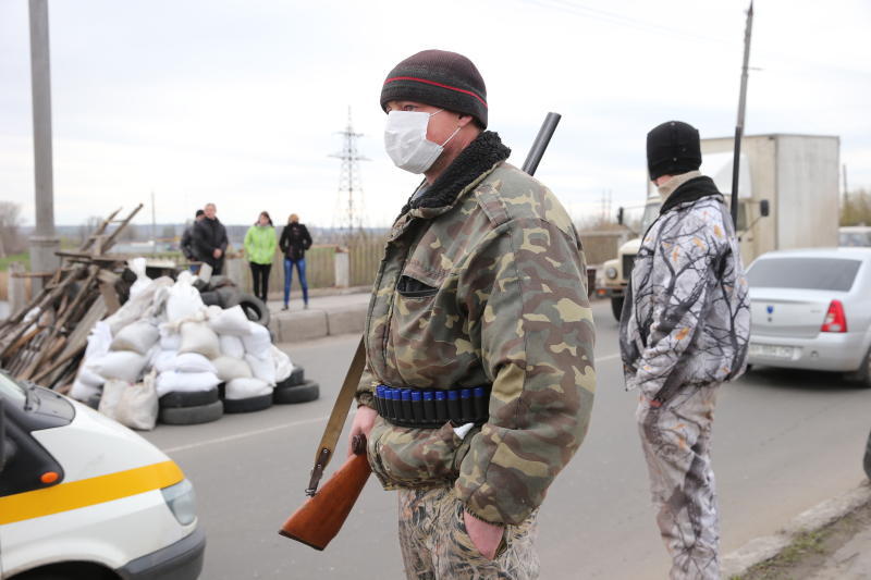 По данным телеканала «Россия 24», жители Краматорска будут нести круглосуточное дежурство близ аэродрома, на который высадились около 30 одетых во все черное вооруженных бойцов. Их доставил вертолет.