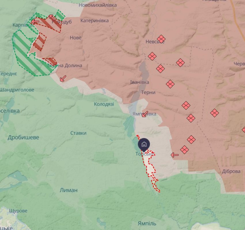 На карте украинского ресурса Deep State Торское находится в серой зоне.