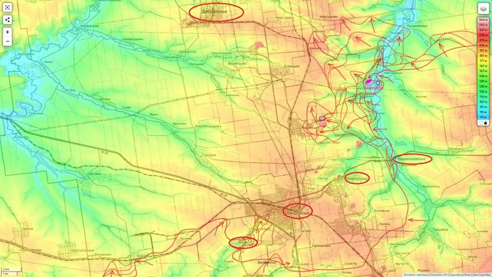 Добавим, что власти Доброполья, расположенного в 17-18 км от Покровска, объявили принудительную эвакуацию семей с детьми. Зона эвакуации расширена также на 8 соседних деревень. Видимо, Киев отчётливо понимает, что вскоре бои перетекут к окраинам этого города.