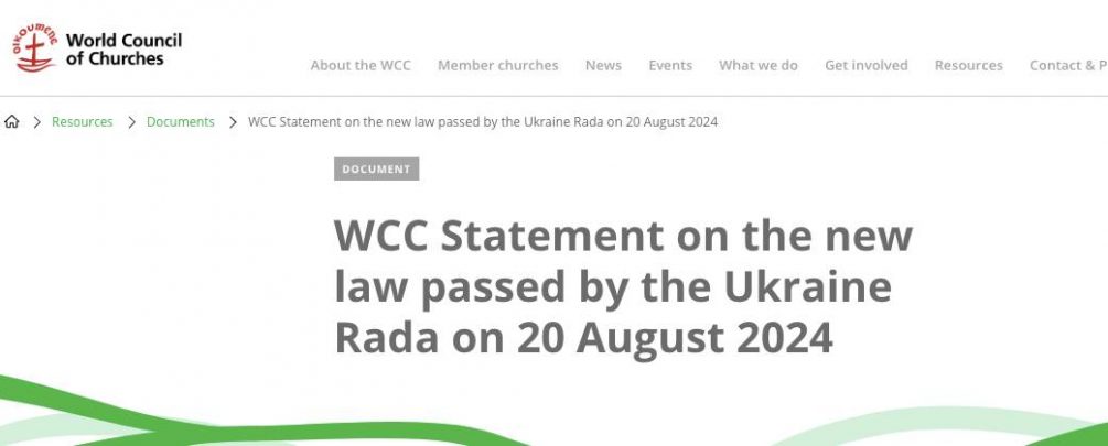 «Новый закон может привести к несправедливому коллективному наказанию всей религиозной общины и нарушению принципов свободы религии или убеждений», подчеркнуто в сообщении на сайте ВСЦ. Всемирная организация напоминает киевскому режиму, что «никакие преступления отдельных лиц или исторические связи религиозной организации не могут служить достаточным основанием для мер, приравниваемых к коллективному наказанию живой религиозной общины на Украине».