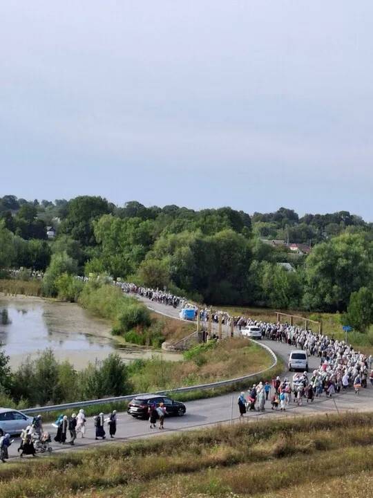 250 километров пешком шли православные по Украине из Каменец-Подольска до Почаевской лавры, молясь о мире. Почаевскую лавру.