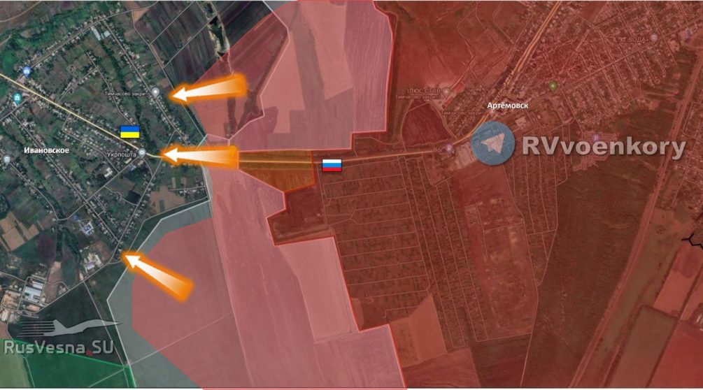 На севере от Красного (Ивановское), подразделения ВС РФ стремятся забрать линию укреплений вдоль высот. Это позволит установить огневой контроль над посёлком.