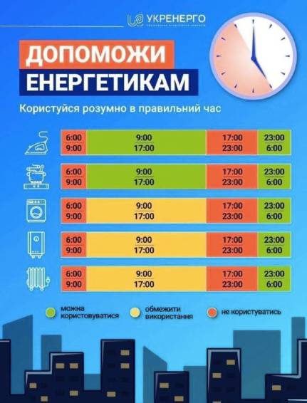 И только в Верховной раде Украины подошли к вопросу с электроэнергией без драматизма. Здесь призвали граждан помочь энергетикам и разместили соответствующую яркую «шпаргалку». В ней указано, как экономить и когда лучше не пользоваться конкретными бытовыми приборами.
