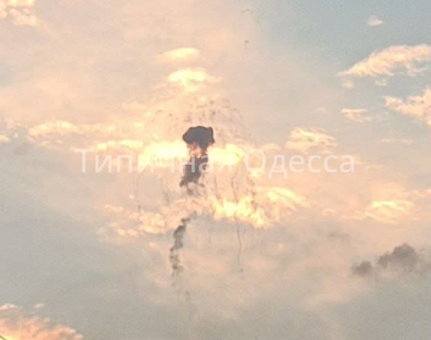 Одесские Телеграм-каналы опубликовали видео предполагаемого уничтожения ракеты. В небе виден чёрный дым, но при этом на фоне слышен звук детонации.