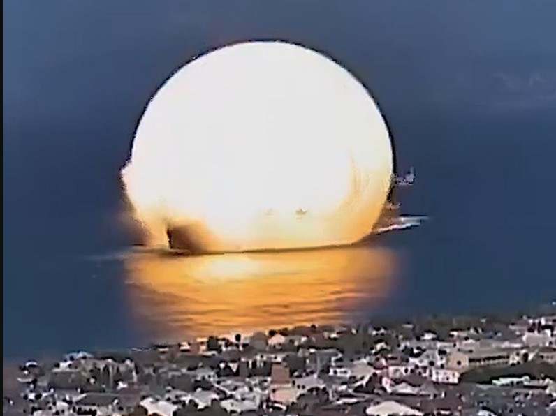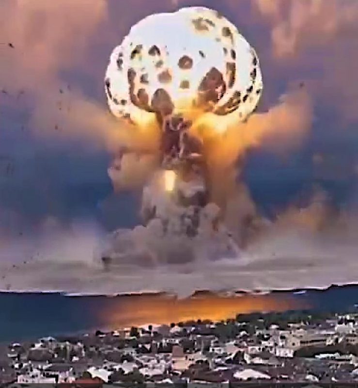 Как может выглядеть ядерный удар «Орешником»? Предполагается, что у него шесть боеголовок, в каждой из которых еще по шесть суббоеголовок индивидуального наведения. То есть, одна ракета несет 36 зарядов. Каждый из них может быть «тактическим ядерным». Взрыв всего одной боеголовки «воссоздали» с помощью ИИ.