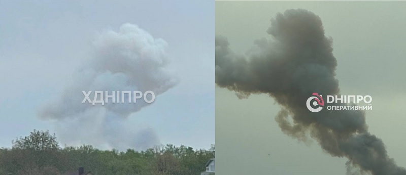 Днём о прилётах в городе написали украинские СМИ. В Днепропетровске прозвучал мощный взрыв, а в небо поднялся большой столб дыма.