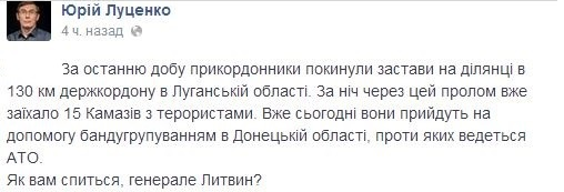Луценко уверен - через границу на Украину свободно едут Камазы с людьми