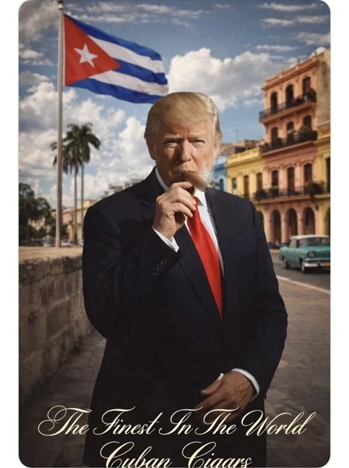 Трамп продолжил дискуссию в своем стиле – опубликовал сгенерированную нейросетью картинку, изображающую, как он закуривает «лучшую в мире кубинскую сигару» на улице Гаваны.