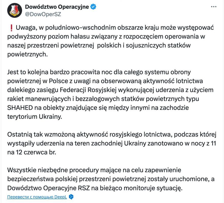 Как сообщили в ВСУ, Россия применила 31 ракету и БПЛА (14 ракет воздушного, наземного базирования и 17 ударных дронов). Всего в сторону Украины полетело 10 крылатых ракет Х-101/Х-555, три баллистические ракеты «Искандер-М» и «Кинжал». Как заверяет Киев, он сбил все беспилотники, но при этом не стал отрицать прилёт нескольких ракет точно в цель. Польша, по традиции, поднимала в небо авиацию из-за ночной атаки по Украине. При этом летуны НАТО снова не стали сбивать наши боеприпасы. Не успев подсчитать потери, ВСУ около 10 часов утра заявили, что удары по территории Незалежной повторились.