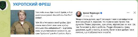 Чем конкретно будет заниматься заместитель Ермака не уточняется, однако многие обратили внимание на странности Ирины Верещук. Ранее бывший вице-премьер отметилась интересными заявлениями, которые напомнил телеграм-канал «Укропский фреш».