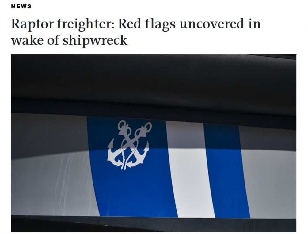 Судно находилось в «черном списке» международных контрольных органов (Paris MOU & Black Sea MOU). Raptor оказался в этом перечне после проверки, которая проводилась 24 месяца назад. Она показала, что документы на членов экипажа были недействительны, а в книге учета нефти (Oil Record Book) имелись незаконные записи. Судя по всему, это свидетельствует о причастности корабля к контрабанде.