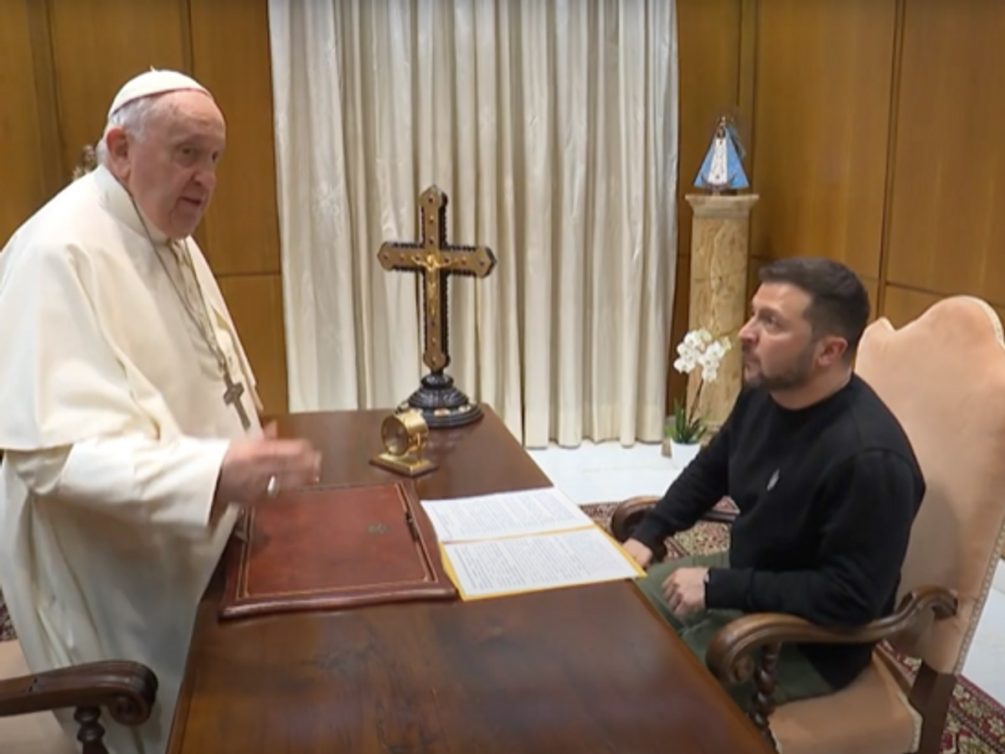 Зеленский недвусмысленно послал Папу римского Франциска, который призвал к мирному урегулированию конфликта между Москвой и Киевом. Понтифик заявил, что Украина как проигрывающая сторона должна найти в себе мужество это признать, согласиться на переговоры и «поднять белый флаг», чтобы спасти жизни украинцев и саму Украину.